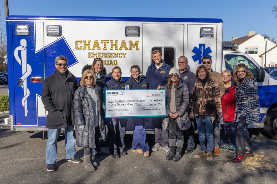 We are humbled to share that the Sue Adler Team donated $10,000 to support local education and volunteer EMS services through our Annual 100th Home Sale Charity Program! Checks were presented during the Sue Adler Team’s yearly VIP Client Appreciation Pie Day event which is held at our Chatham office on November 22nd.