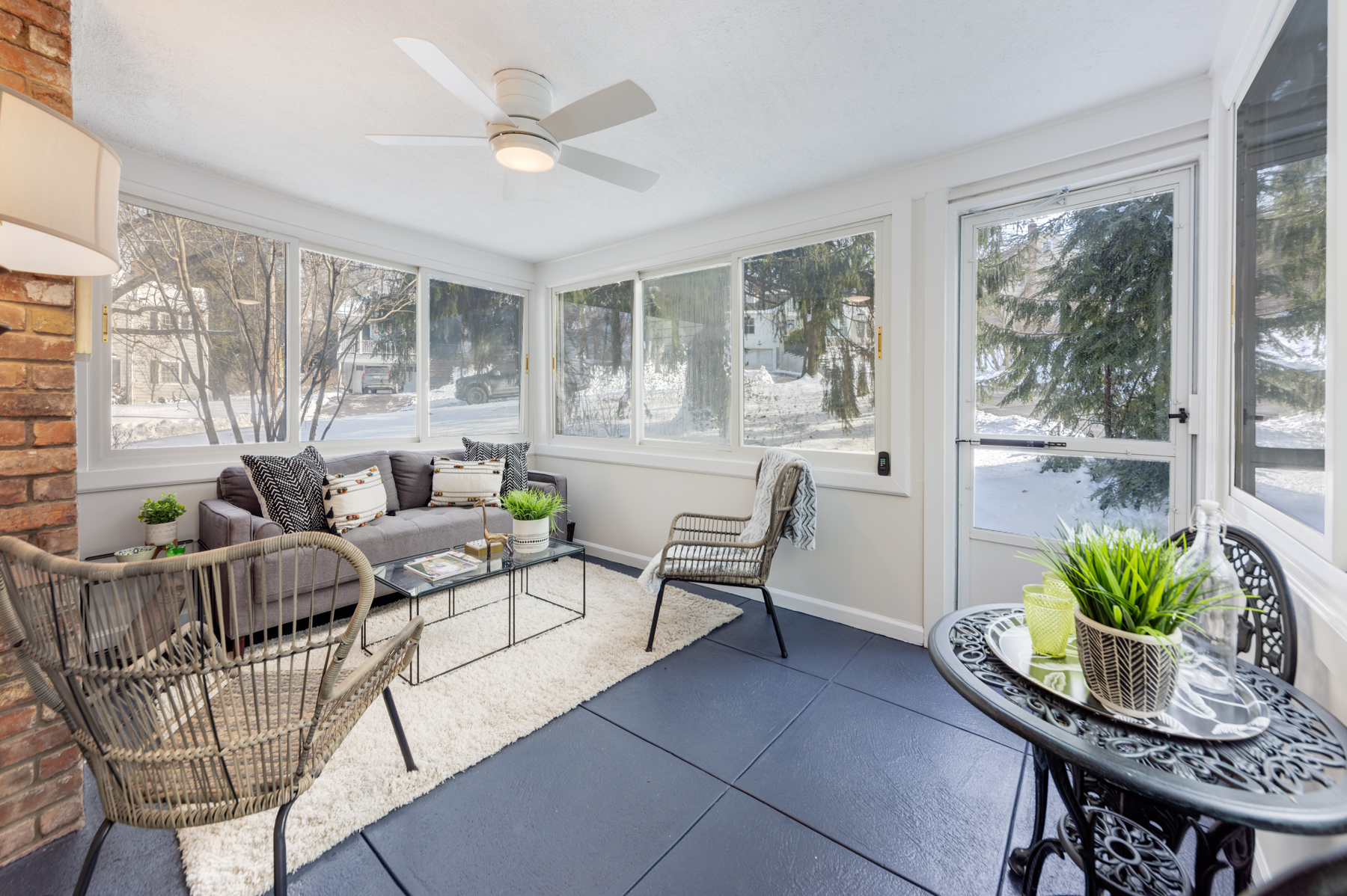 Tons of flexibility to have a Primary Bedroom on either 1st or 2nd Level. Great curb appeal, sundrenched rooms and good flow. Sunny and bright Living Room with huge windows, fireplace and dentil molding. Gracious Dining Room. Dreamy, private Sun Room.Â