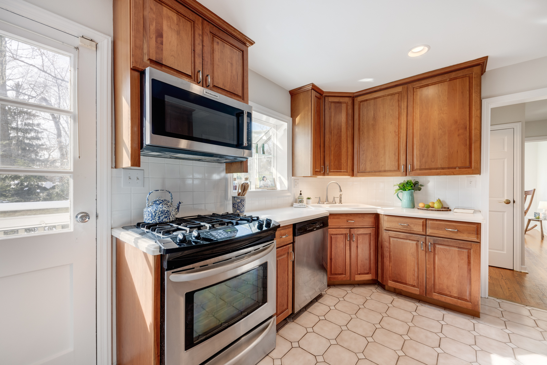 Cheery Kitchen that could easily be used as is or could be updated and opened up to the main living area. Private backyard.