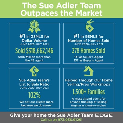 FOR THE FIRST TIME EVER: The Sue Adler Team is $106 MILLION higher than the number 2 agent team in all of GSMLS! (if you go back a rolling 12 months, with $318 million in closed volume)