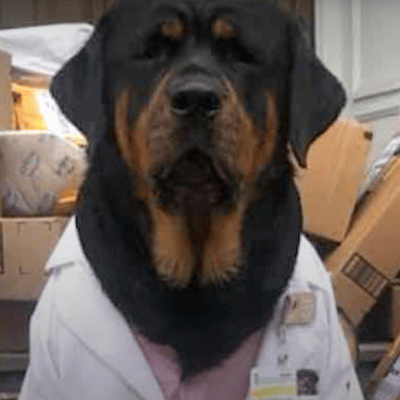 Even without a medical degree, Loki the Rottweiler is “treating” hardworking healthcare employees with care packages that make them smile.