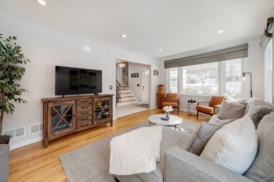 Move right into this spacious beautifully renovated home, located on a tree-lined and family-friendly street, minutes from top-notch schools, Summit Midtown Direct Train, highway access, shopping and restaurants. Amazing curb appeal. Covered front porch for relaxing after a long day. Gleaming, hardwood floors throughout and plenty of natural light. Freshly painted with chic soothing hues throughout. Elegant Living Room which flows right into the dining room. The kitchen boasts stainless steel appliances, crisp white wood cabinets and a large center island with plenty of storage and room for two stools. Spacious Family Room with an adjacent tasteful half bath. Laundry area on the main floor for convenience. Access to the large wood wrap around deck and two-car garage. Sunny and chic newly renovated Master Bedroom Suite.  One large double closet and a separate walk-in closet with a private sliding barn door. Newly renovated Master Bathroom with a relaxing soaker tub, a two-person shower with a bench, double sink and vanity and plenty of storage. Two other sundrenched and roomy bedrooms. BONUS in-law suite on the second floor with lots of privacy and room for your special guests! Magnificent recreation room and home office round out the lower level. Out-of-this-world Deck, magnificent fenced in yard with a shed for extra storage. Surrounded on two sides by wildlife-protected land for even more privacy! With its prestigious neighborhood, close proximity to Summit Midtown Direct train and New York City, top notch schools and convenience to shopping and restaurants, 26 Maple Road cannot be missed!