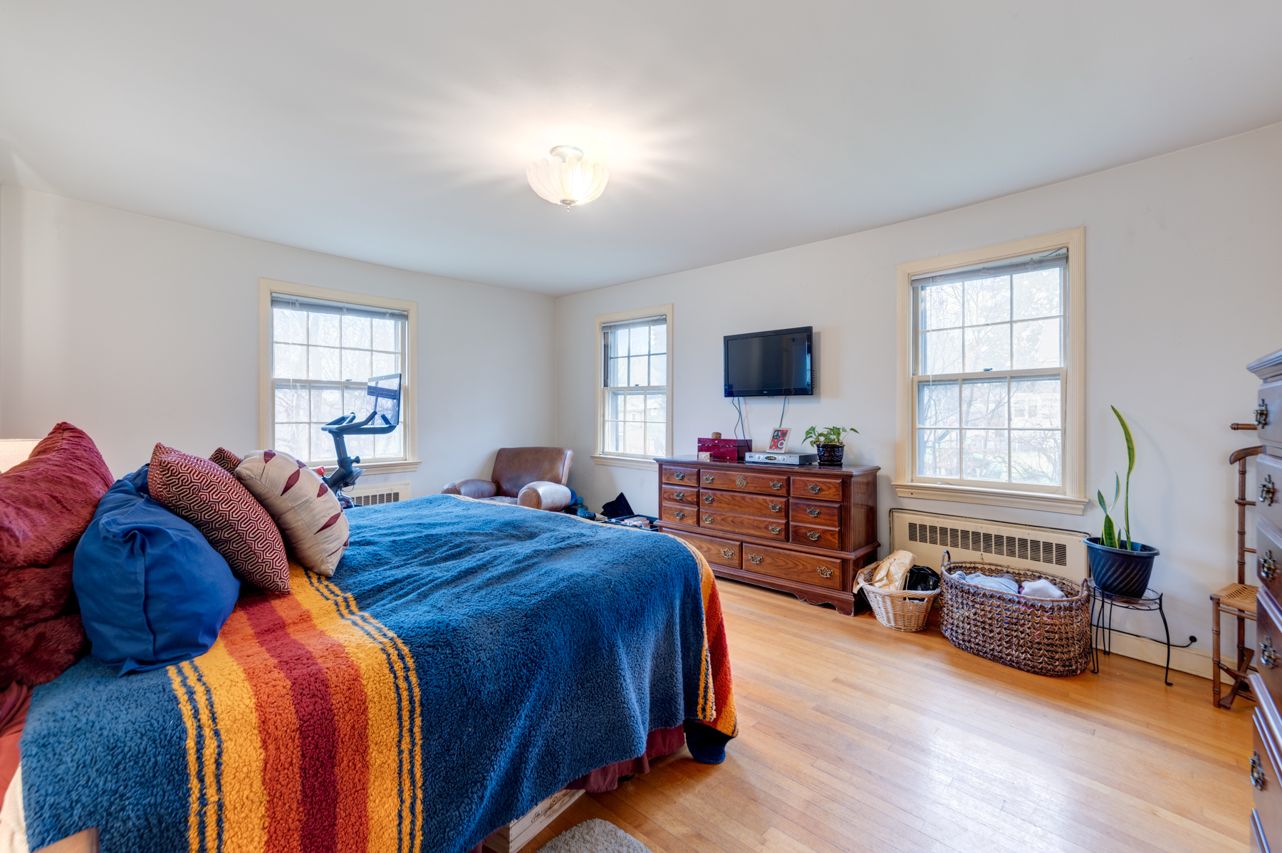 Primary Suite with Walk In Closet, original Vanity/Dressing Area and well-appointed Bath. 2 other bedrooms sunny and bright with large closets.