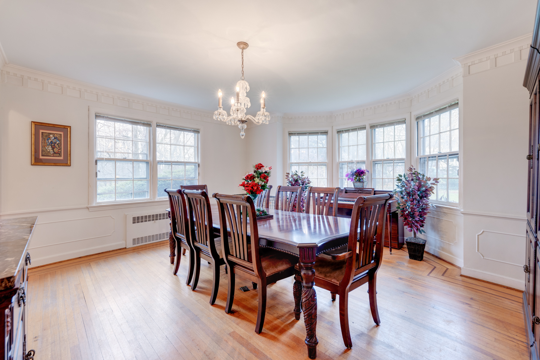 Beautiful Dining Room with wainscoting and bay of windows. Lovely Kitchen with Breakfast Room. Sun Porch. Huge corner property with plenty of room for play and entertaining.