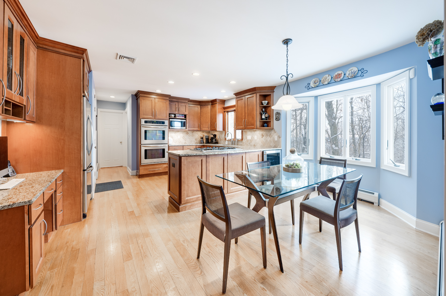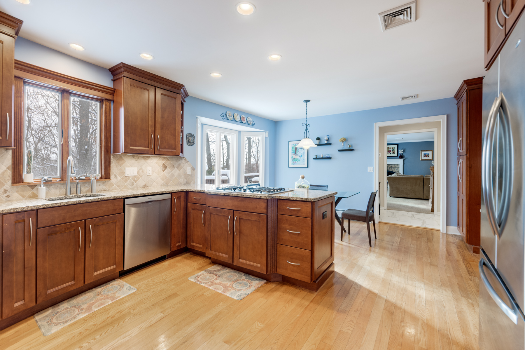 Terrific Deck for outdoor entertaining with built-in Gazebo and breathtaking backyard views. Chef’s Kitchen with custom cabinetry, granite, stainless steel appliances, and a magical Breakfast Area.