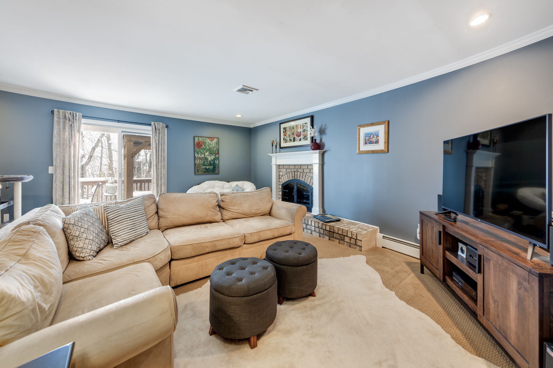 Lovely Living Room with bay window. Elegant Dining Room. Fabulous and spacious Family Room with fireplace and access to Deck. TO DIE FOR Home Office overlooking bucolic backyard.