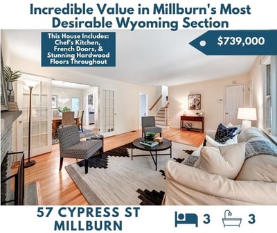 Incredible value in Millburn’s desirable Wyoming section across from Slayton Field park with tennis courts, short walk to topmost rated (Great Schools 10/10) Wyoming School, walking distance to Midtown Direct Train, and fantastic restaurants and shopping in downtown Millburn and Maplewood. This house has an amazing relaxed vibe with a magnificent open concept floor plan perfect for entertaining with 3 separate entertaining spaces. Fabulous Gourmet Chef’s Kitchen with tons of custom cabinetry, beautiful countertops, high-end stainless-steel appliances, and gorgeous views of the outdoors. Gleaming hardwood floors and soothing hues throughout. Living Room with gas fireplace. Pella designer windows and doors with built-in blinds, Dining Room with double French doors. Fabulous Family Room with wainscoting. 3 tasteful Full Baths. Master Bedroom boasts a Walk-In Closet and 2nd Double Door Closet. 2 other bedrooms are roomy with double closets. Home Office/Au Pair Suite and so much storage space. Deck with a private, flat backyard. Low taxes. Millburn township is very highly desirable as one of the top-rated school districts in the country with a lot to offer including Papermill Playhouse, golf course, many parks. Don’t miss this great opportunity to make Millburn your new home!