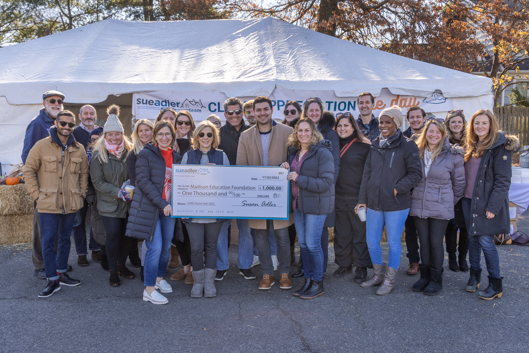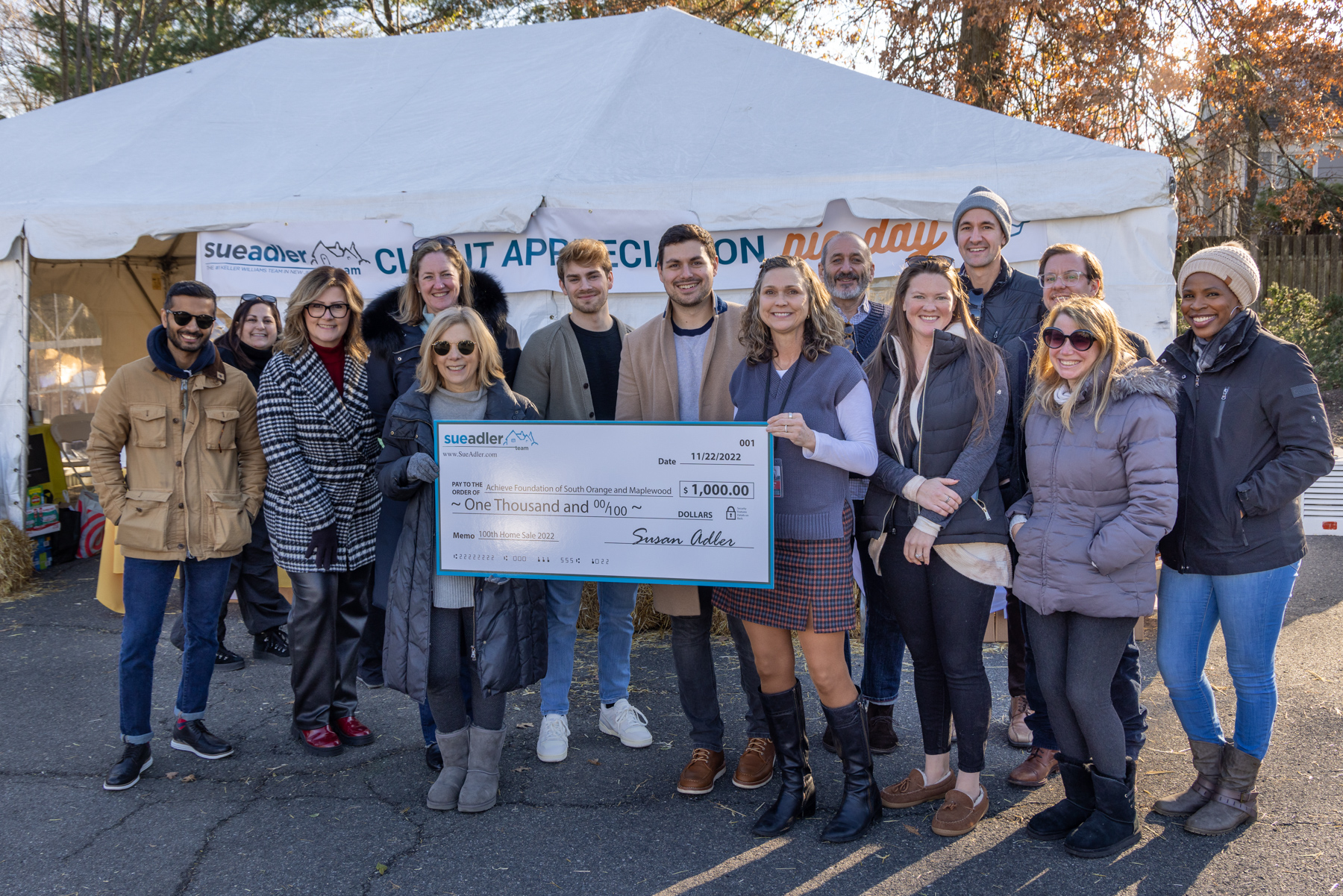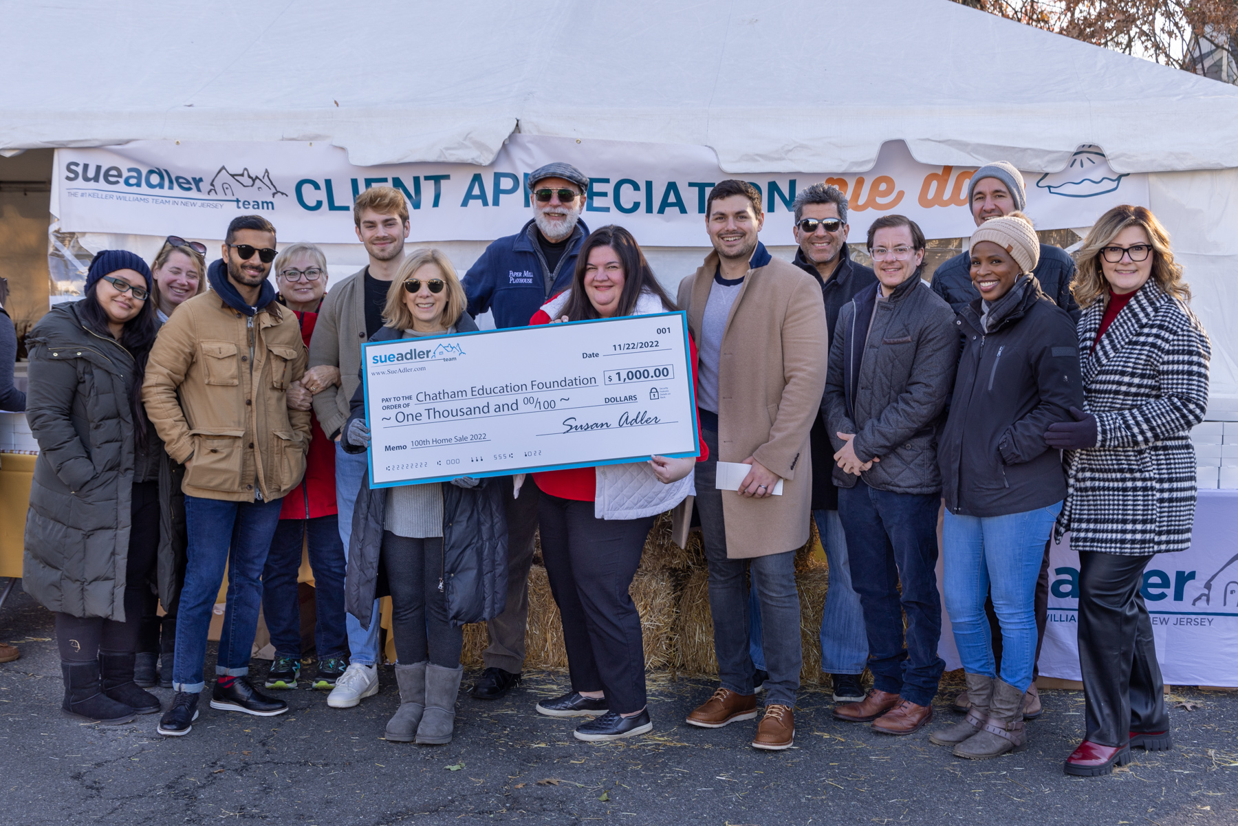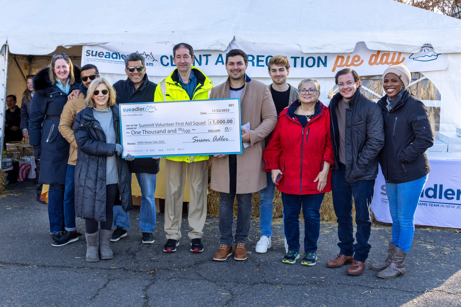 CHATHAM, December 14th, 2022 — The Sue Adler Team of Keller Williams Realty donated a total of $10,000 to local organizations this year as part of its annual 100th Home Sale Charity Program. This year, the top residential real estate team focused its donations on education foundations and volunteer emergency services within our train line towns. Checks were presented during the Sue Adler Team’s yearly VIP Client Appreciation Pie Day event, which was held at its Chatham office on November 22nd.