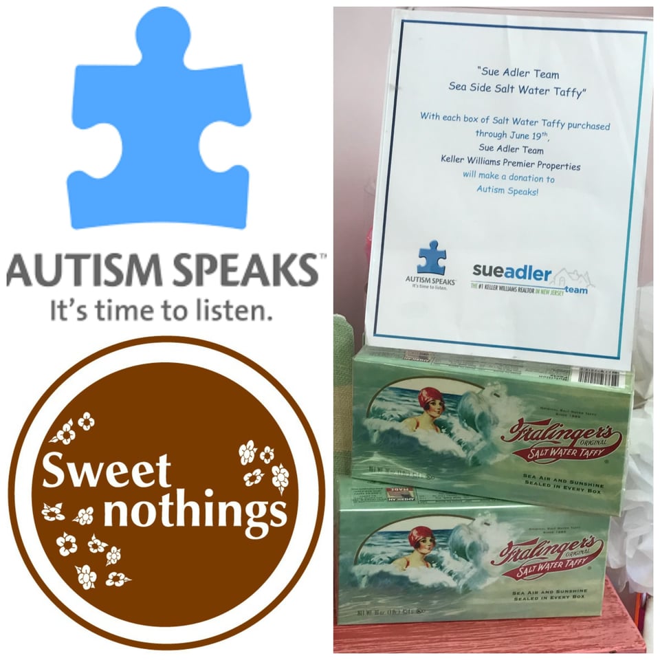 The Sue Adler Team is committed to forging community partnerships with our local businesses and working together to make a difference in the lives of those around us, and we’re honored to join forces with Sweet Nothings to support Autism Awareness. So if you need a sweet little taste of summertime goodness that brings back memories of days spent down the shore, please consider picking up some of these New Jersey-made treats. Your generosity will speak volumes to our friends at Autism Speaks!